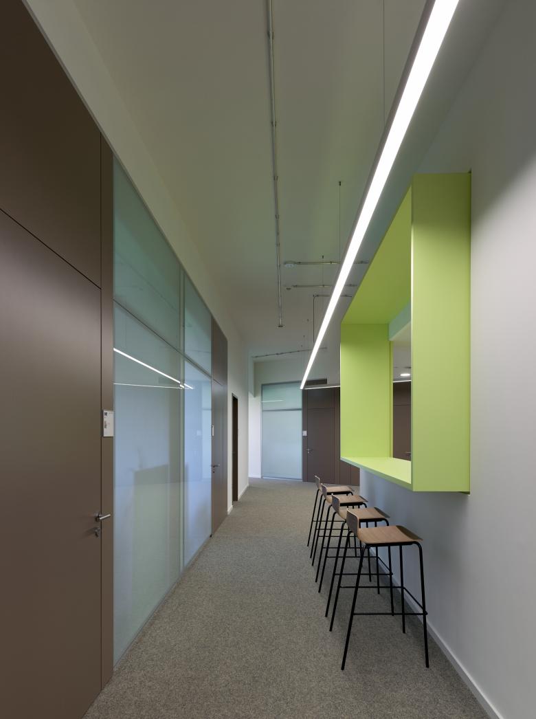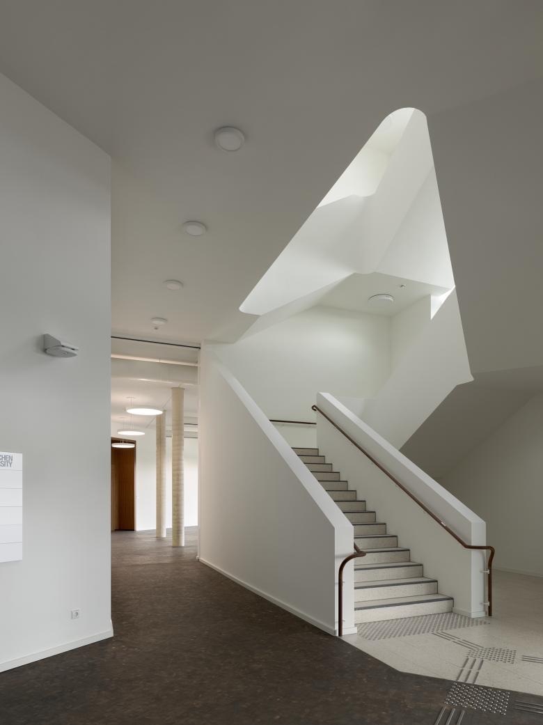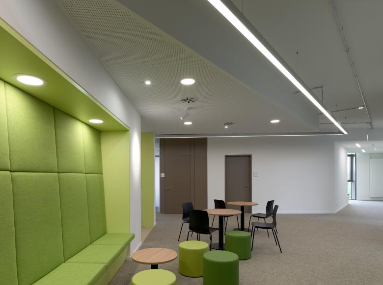 dienen, sondern als zentraler Wissenschaftsaustauch im Gebäude. Darüber hinaus befinden sich in jedem Obergeschoss Sozialbereiche.