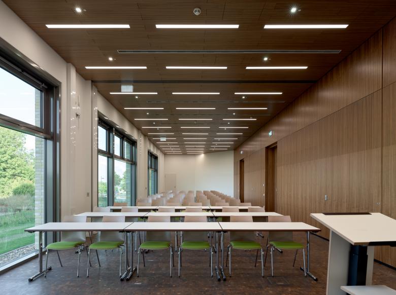 Im dritten Obergeschoss wurde eine Dachterasse mit Blick auf das Naturschutzgebiet realisiert, die unmittelbar an die Bibliothek angrenzt. Diese soll nicht nur als Bibliothek