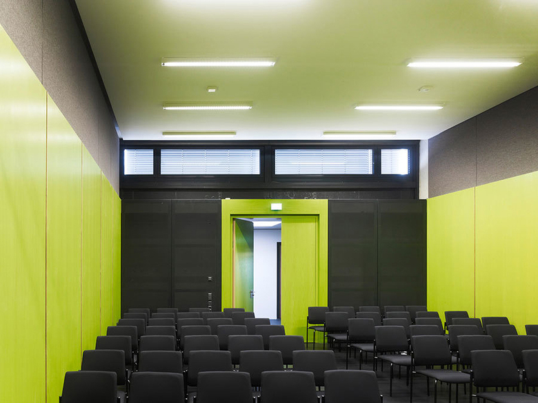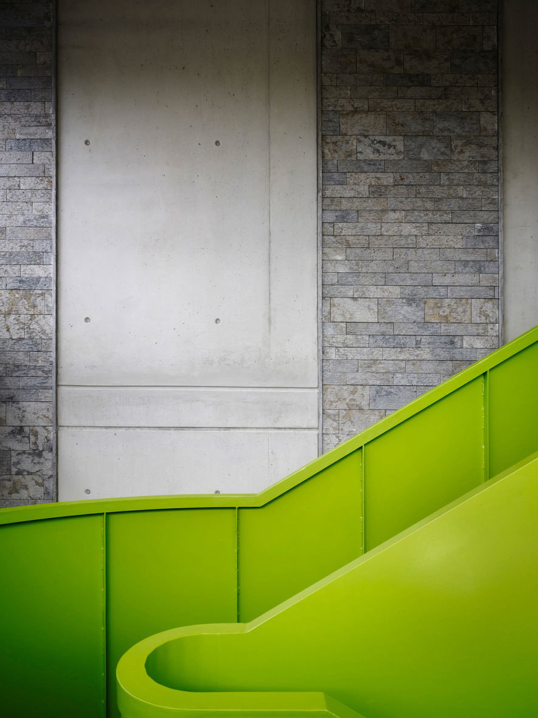 Die Herausarbeitung der abgesenkten Höfe in Süd- und Nordosten verklammert das neu entstandene Ensemble. Die neue Adresse – der Eingang zum Neubau – wird dabei deutlich durch eine Brücke über den südöstlichen Hof formuliert. Prof. Johannes Kister dazu: „Das neue Forschungsgebäude arrondiert das Gelände der Reiche Zeche und stärkt die Adressbildung des Instituts.“