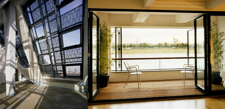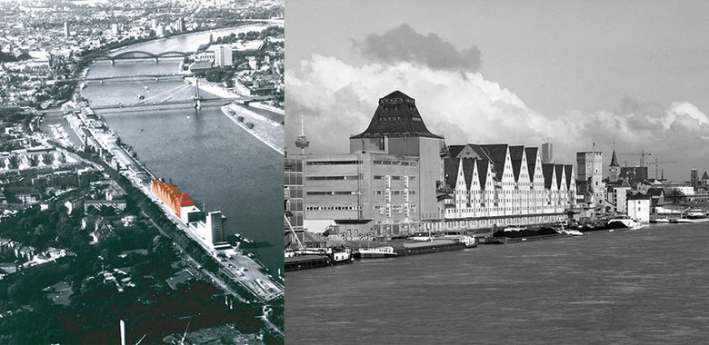 Lange Zeit galt das 1908-09 von Hans Verbeek errichtete Gebäude mit seinem Betonskelett nicht sanierbar. Insbesondere die große Gebäudetiefe in Verbindung mit niedrigen Geschoßhöhen stellte die Frage nach ausreichender Belichtung und erfolgreicher Vermarktung. Das Gebäude verlangte eine Sanierung, die zum einen den Gebäudecharakter respektiert und zum anderen die Nachhaltigkeit der Nutzung garantiert. Um die Eingriffe in den Denkmalbestand auf ein Minimum zu reduzieren, verzichteten kister scheithauer gross auf den gern praktizierten Einbau von Lichthöfen. Vielmehr schufen die Architekten durch intelligente, offene Grundrissanordnungen sowie innenliegende, gläserne Loggien großzügige Wohnwelten am Wasser. Insgesamt entstanden auf acht Ebenen über 130 Wohnungen sowie attraktive Gewerbeflächen in der Erdgeschoßzone entlang Kölns neuer Flaniermeile.