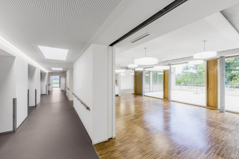 Der Umbau und die Erweiterungsarbeiten im Haupthaus sind grösstenteils innenräumliche Veränderungen, welche eine Neukonzeption bezüglich Funktion und Gestaltung des Restaurants beinhalten. Mit dem Einsatz von zeitgemässen Materialien und Leuchttechnik wird eine neue und dem Pflegezentrum adäquate Identität geschaffen.