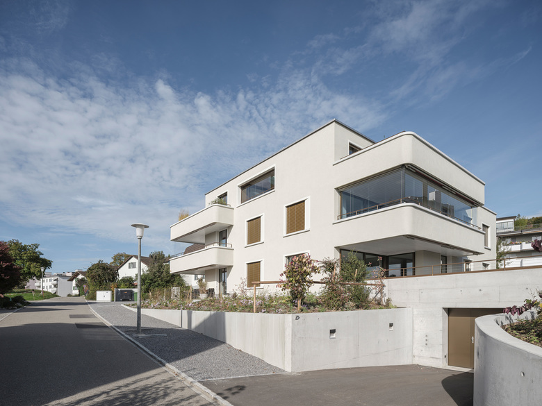 Bereits beim Betreten des Grundstückes wird das kleine feine Mehrfamilienhaus erlebbar. Der mit Hecken umrahmte Vorgarten markiert die nötige Privatsphäre der Liegenschaft. Das räumlich grosszügige Treppenhaus, ausgestattet mit warmen Materialien und einer subtilen Lichtgestaltung empfängt die Ankommenden bereits mit viel Wohnlichkeit. Die innere Erschliessung der fünf Geschosswohnungen und die Raumfolge gewährt in unterschiedlichen Varianten freie Durchblicke und Ausblicke auf die Berge und schafft dadurch eine wohltuende Grosszügigkeit.