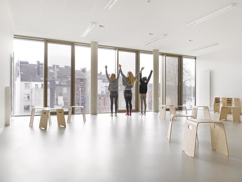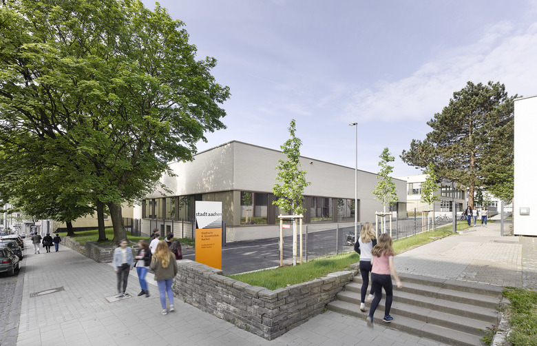 Die 4. Gesamtschule Aachen befindet sich inmitten einer Wohnbebauung, welche städtebaulich als Blockrandbebauung zu verstehen und zu achten ist.