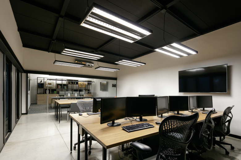 LEAP Laboratorio en Arquitectura Progresiva is an architectural firm working from Guadalajara, Mexico since the year 2001 and has a new office space. The house where their creative space was built is a 40 years old house that is a couple of lots to the north of the headquarters of MTQ, a leader company in the A/E/C sector, specialized on the technical and engineering aspects of architectural projects and a strategic partner of LEAP since its beginnings. When the property came into the real estate market it was a natural choice to acquire it because the location just some meters away from MTQ. The house had always been used as a private residence, and has a medium sized backyard and a terrace. The project recycled the bedrooms in the upper level as private office spaces, the former space for dining on the first floor was transformed into the new meeting room, minor transformations were made to convert the kitchen into the office reception, and in the backyard a new black metallic box was built, this box is the workshop space where the architectural projects are carried out. At the end of the workshop space, a transparent division gives privacy to the principals of the studio.