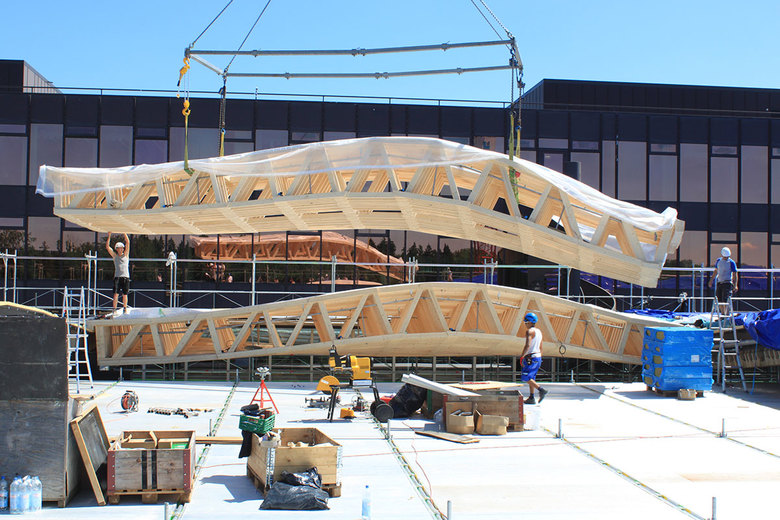 Zur Demonstration der Tätigkeit des ITA-Instituts folgten sämtliche Entwurfs-, Bemessungs- und Produktionsprozesse der hölzernen Dachkonstruktion konsequent den Prinzipien der digitalen Kette.