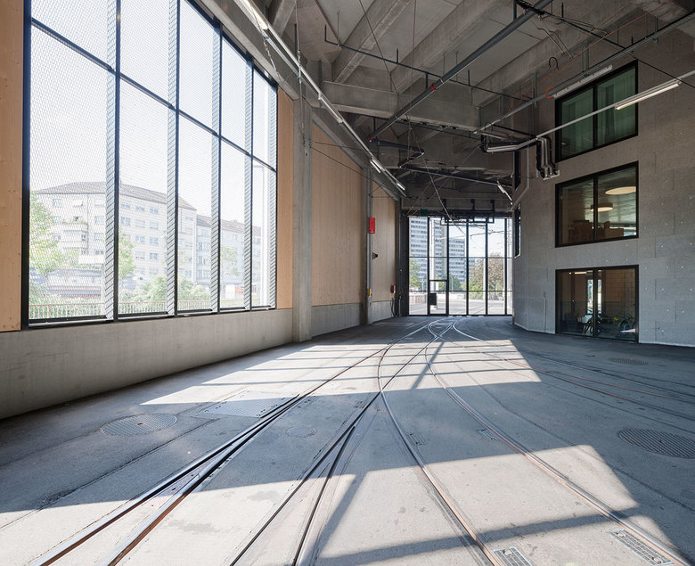 Mit dem "Leuchtturmprojekt" Kalkbreite wurde, basierend auf einem Architekturwettbewerb, ein urbanes Zentrum für gemeinschaftliches Wohnen und Arbeiten mit hohem Nachhaltigkeitsanspruch geschaffen. Besonderes Kennzeichen der Überbauung ist die innenliegende Tramhalle, die von den mehrgeschossigen Baukörpern der Wohn- und Gewerbenutzung umschlossen wird. Aufgrund des Grundrisses der Parzelle und der Tramhalle ergaben sich für die einzelnen Gebäudeteile sehr komplexe Geometrien. Die umschliessenden Bauwerke wurden weitestgehend mit einem Stützen/Deckenplatten-Tragwerk erstellt. Einzig im Bereich des Kinos und der grossen Zugangstreppe zum hochliegenden Hof auf der Tramhalle erfolgt der Lastabtrag mit einem höchst komplexen Scheibentragwerk. Für die Tramhalle wurde ein Trägersystem aus weitgespannten vorfabrizierten Stahlbetonträgern in Verbindung mit einer monolithischen Deckenplatte gewählt. Ein räumliches Stahlfachwerk überspannt als "Wohnbrücke" die Tramhalleneinfahrt.