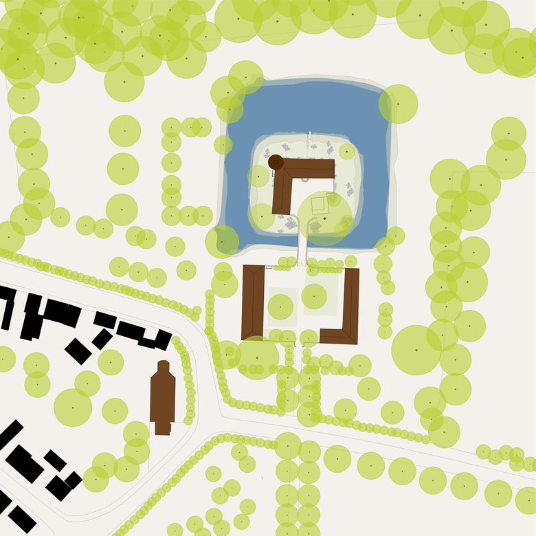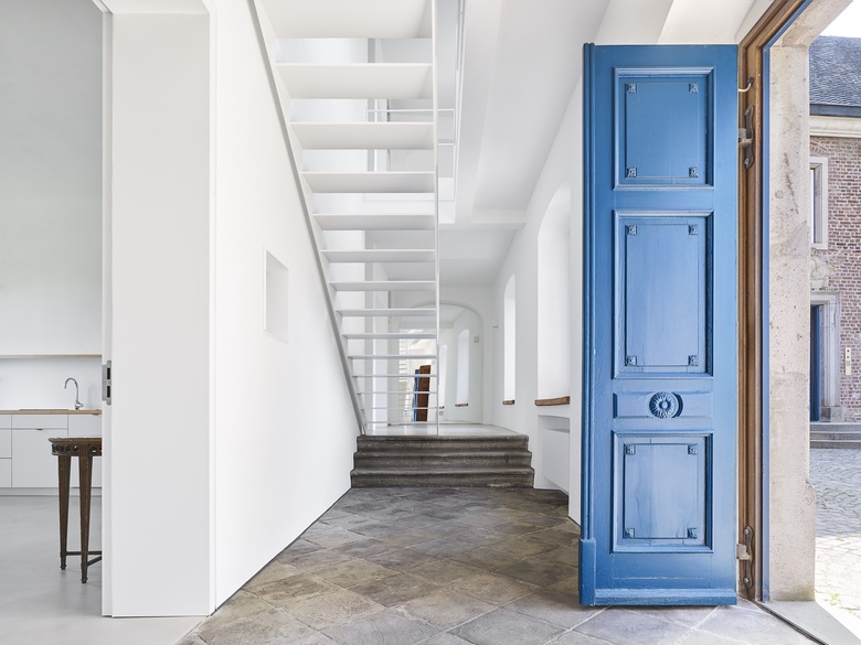 Respektvoller und fachgerechter Umgang mit den vielfältig modellierten Wänden, Decken und Böden aus dem Bestand, präzise Fügung und Einfügung von neuen Bauteilen, sensibler Einsatz von Materialien und deren Oberflächenbearbeitung und sorgfältige Führung von Kunst- und Tageslicht charakterisieren die Räume in der Burg Bachem nach dem Umbau.