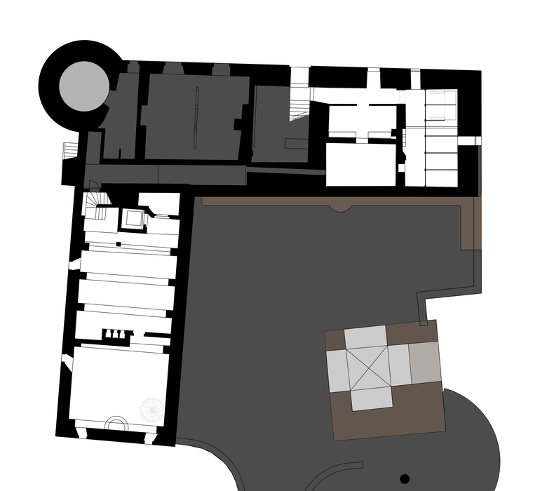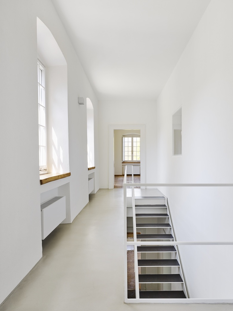 Unter Ausnutzung des denkmalgeschützten und räumlich überaus vielfältigen Bestandsgefüges wurden die Wohnungen nach dem Grundsatz entwickelt, nach dem eine gute Wohnung wie eine kleine Stadt funktionieren sollte: die Funktionsbereiche werden durch vielfältige Wege- und Blickbeziehungen durch die abwechselnd weiten und engen Räume der Wohnungen miteinander verknüpft.