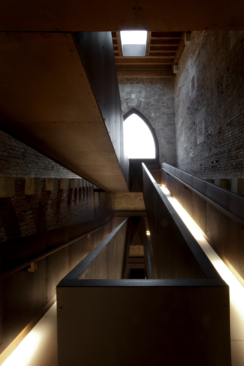 The aim of the project – winner of the design competition launched in 2006 by the Arsenale di Venezia Spa – is to ensure the conservation and enhancement of the spatiality of the historic building, combining the needs arising from the insertion of new features to turn it into a cultural center.