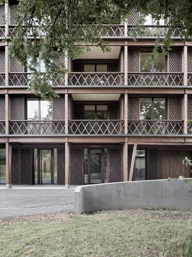 Das in Holz gehaltene Wohngebäude ist im Zusammenspiel mit den naheliegenden Ökonomiegebäuden zu verstehen. Es entsteht dadurch ein Lebensraum, welcher als Schnittmenge gelesen werden kann zwischen dem klösterlichen Bereich und dem Wohnquartier des Wesemlins. Das Gebäude ergänzt atmosphärisch die Klosteranlage, so dass das Klosterareal mit seinen Gebäuden, Aussenräumen, Gärten und Bäumen erhalten bleibt und durch die Schaffung von Wohnraum das Kloster nicht konkurrenziert wird.