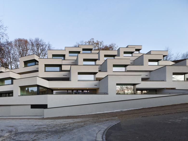 Das Projekt Plateaux de Berne bildet eine topografisch inspirierte Architektur, welche die Besonderheiten des Ortes widerspiegelt. In seiner spezifischen Architektursprache definiert das Gebäude wahrnehmbar den Ortsrand von Ostermundigen, am Übergang von der Ebene zur hügligen Erhebung. Die Materialisierung in hellem, rauem, sandsteinfarbenem Putz verleiht der Anlage eine tektonische Wirkung und steht dadurch in komplementärer Ergänzung zum Abbau des Baumaterials in der ehemaligen Steingrube. Die terrassenartige Anordnung der Wohneinheiten erzeugt ein hochwertiges Wohnen mit starken aussenräumlichen Qualitäten, Beziehungen zur Aussicht und Einbezug des Naherholungsraums am Hang. So schmiegt sich die Villengruppe einerseits entlang der Höhenkurven des Geländes an und schafft anderseits einen räumlichen Dialog mit dem nordöstlichen angrenzenden Waldrand.
