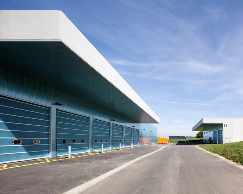 La conception de la façade met en rapport des éléments verticaux, sous la forme de tôles en aluminium perforé ondulant légèrement, avec la frondaison des arbres. Face à une demande programmatique complexe, impliquant des ouvertures disposées au gré des fonctions, cette peau devient l’élément unitaire expressif. La fonction de protection solaire vient s’ajouter à la cohérence architecturale.