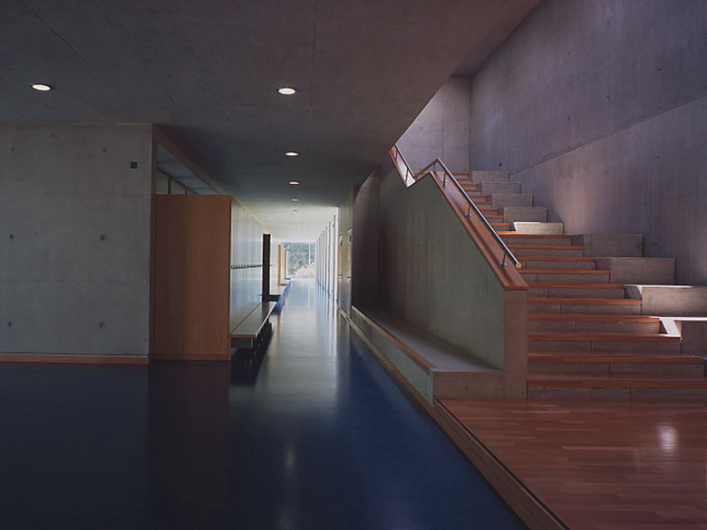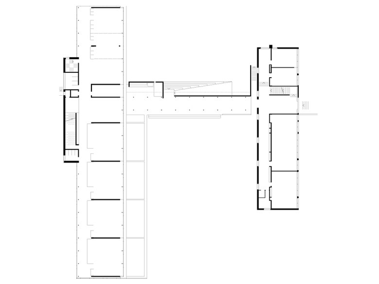 Le rapport structure-enveloppe est envisagé de telle manière à utiliser, à l’intérieur, un minimum de matériaux et de rendre lisible la présence de la structure. C’est la coupe, par sa transparence, qui révèle le caractère traversant du lac au Jura. La façade-rideau en verre permet l’appropriation totale de ce paysage que ce soit depuis les classes ou depuis les couloirs.