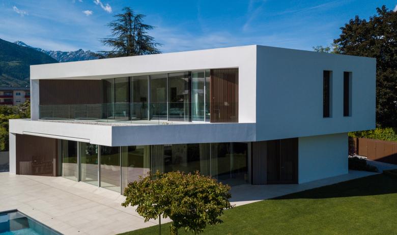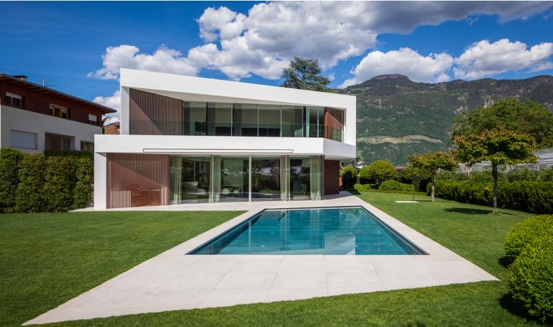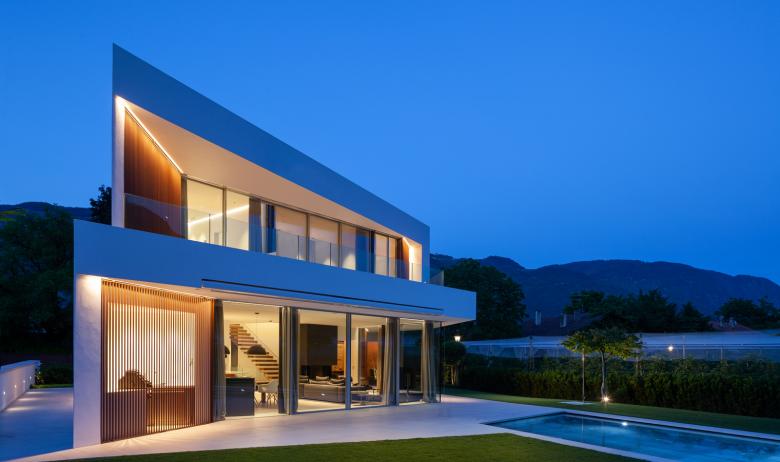 The single-family house G, which is built in climate house standard B has two floors above ground, as well as an underground floor with underground garage. In addition it has spacious terraces, a swimming pool and a large garden.