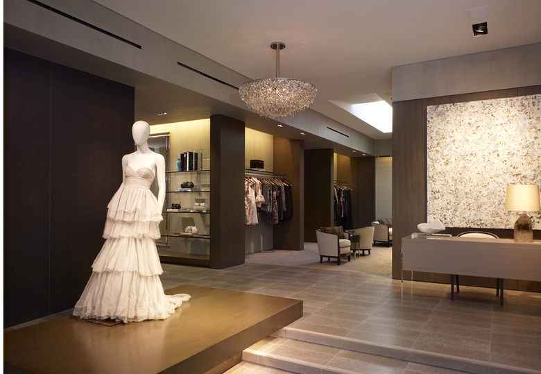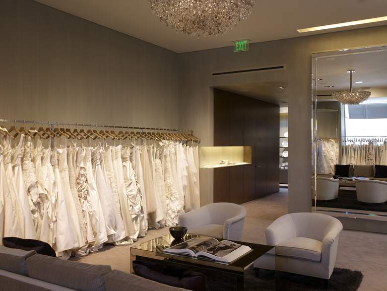 Located in the midst of the busy La Cienega Design Quarter (LCDQ) retail district of Los Angeles is the Monique Lhuillier flagship store. Through Located in the midst of the busy La Cienega Design Quarter (LCDQ) retail district of Los Angeles is the Monique Lhuillier flagship store. Through the use of refined material combinations and innovative lighting techniques, this retail boutique provides the appropriate backdrop for an intimate shopping experience. The boutique consists of both public and private VIP entries, a main showroom, a dress gallery, a series of spacious fitting rooms, and office quarters concealed in the back of the store. In the main showroom, a series of downlights embedded within the perimeter frame bays provide a soft diffused light to the gowns hanging in the racks below. Large rectangular skylights located above the main gallery and VIP entrance allow natural light into the interior cavity of the space. In the dressing rooms, linear lights are embedded above the full height mirrors, illuminating the space below.the use of refined material combinations and innovative lighting techniques, this retail boutique provides the appropriate backdrop for an intimate shopping experience. The boutique consists of both public and private VIP entries, a main showroom, a dress gallery, a series of spacious fitting rooms, and office quarters concealed in the back of the store. In the main showroom, a series of downlights embedded within the perimeter frame bays provide a soft diffused light to the gowns hanging in the racks below. Large rectangular skylights located above the main gallery and VIP entrance allow natural light into the interior cavity of the space. In the dressing rooms, linear lights are embedded above the full height mirrors, illuminating the space below.