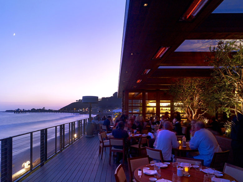 With its panoramic views of the Pacific Ocean, Nobu’s low horizontal profile hugs the bluff along the famed Pacific Coast Highway in Malibu, blending the Japanese notion of integration with the land and a quintessentially Californian celebration of light and openness. The bright palette of natural materials, including board-form concrete, bleached wood, and stone, reflects the abundant daylight emitted through clerestories and enormous floor-to-ceiling window walls. Wood plank and decomposed granite walkways wind through native planting and the shoji-inspired screen entry doors and into the space, where intimate dining nooks and continuous view corridors reinforce the linearity and connection to the outdoors. Sheltered outdoor decks and interior fire features allow diners to enjoy the beachfront views in an elegant yet comfortable setting year-round.