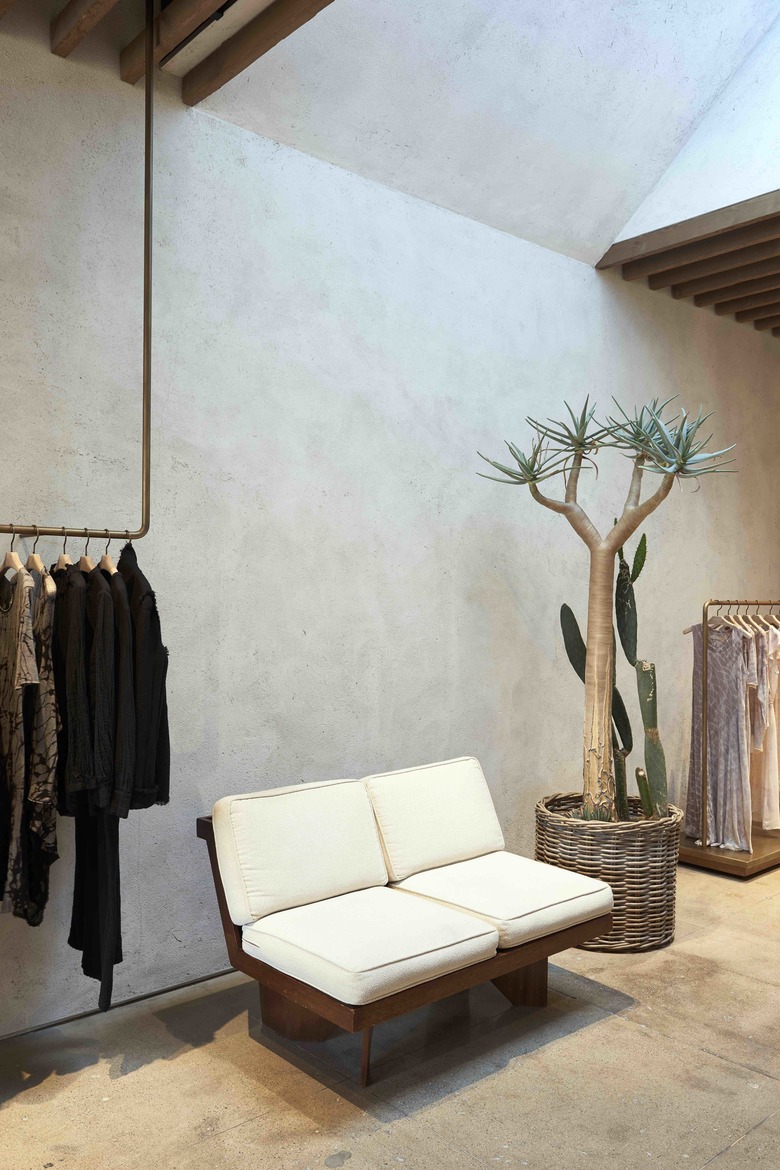 Much like the clothing itself, the first Raquel Allegra boutique is a mix of luxury and comfort, familiarity and exclusivity, detailing and experience. This juxtaposition of seemingly contrasting ideas created the framework for the design approach, materiality and configuration. By preserving elements of the existing space, a balance is achieved between new and old, rough and refined.
