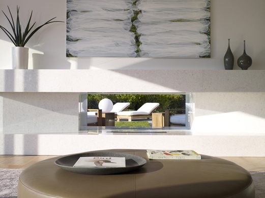 While also capturing 270-degree views of downtown Los Angeles and the Pacific Ocean, this massive foundation-up renovation and second-story addition floods the once-dark interior with natural light and creates indoor-outdoor environments throughout. Floor to ceiling windows combine with natural ipe decks and rooftop rock gardens to extend view corridors and habitable areas at the south and west elevations. The lifted ceiling and custom two-sided stone fireplace create a continuous great room between the living and dining areas and main garden. The newly-added second story offers a separated haven for extended family, including mini-kitchen and secondary family room. Light-colored, beach-inspired materials such as white-washed oak floors, white stone, teak millwork, and ocean-toned glass tiles transform the home into a tranquil, airy Southern California retreat.