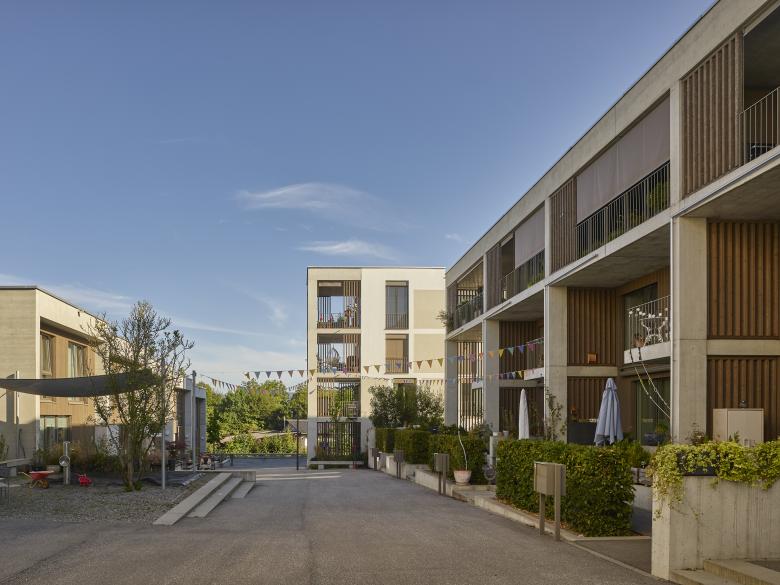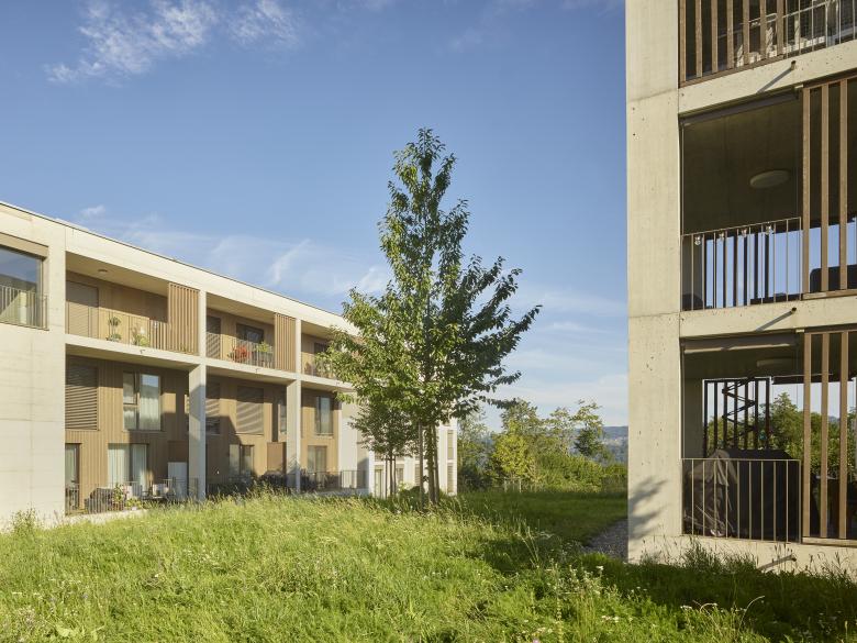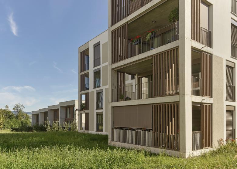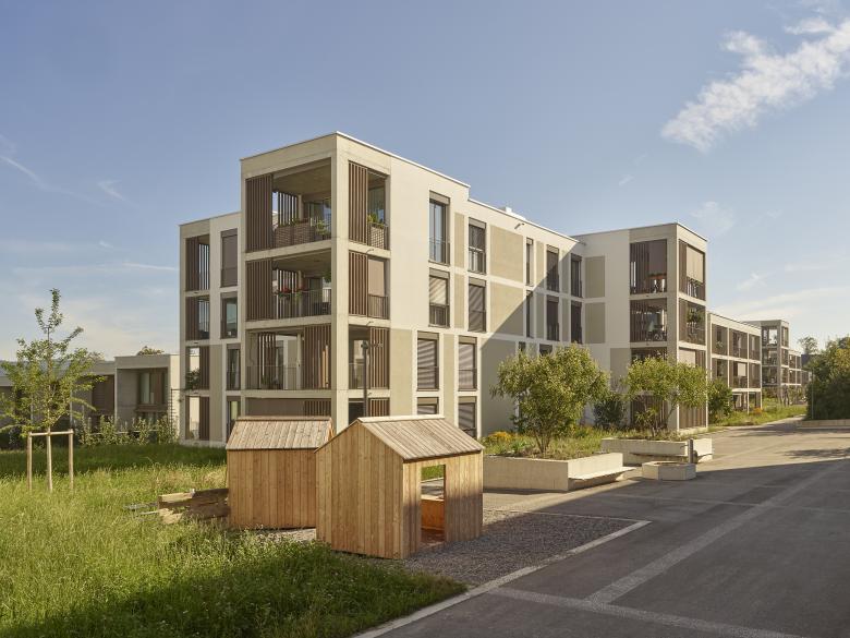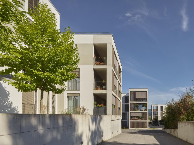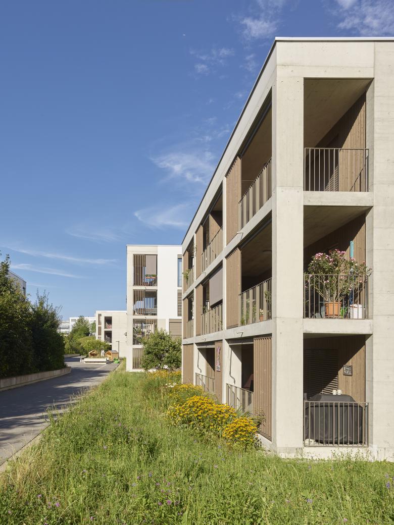Auf den drei Siedlungsfingern, welche in drei Etappen gebaut wurden, bilden verschiedenartige Baukörper Einheiten von angenehmer und überschaubarer Grösse, strukturell verwandt mit Weilern im Mittelland (Stöckli, Spycher oder Schopf). Jeder Finger bietet Raum für unterschiedliche Bedürfnisse und Ansprüche bezüglich Wohnen, Freizeit und in geringem Ausmasse auch Arbeit. Die Gestaltung der Bauten erscheint als Symbiose von urbanen und typisch ländlichen Elementen. Die mit Holz- und Betonstrukturen gegliederte Fassadenbilden eine erkennbare Einheit. Angestrebt wird ein zurückhaltendes, langlebiges und identitätsstiftendes Erscheinungsbild.