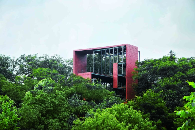 A narrow and long piece of paper rolls, folds up and is becoming a house.