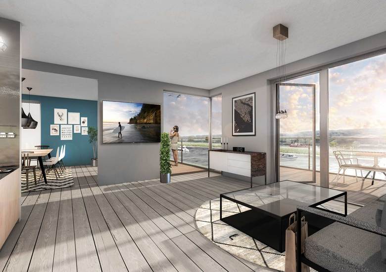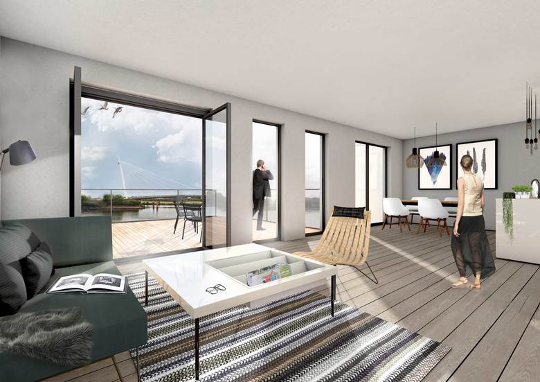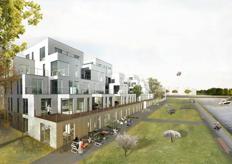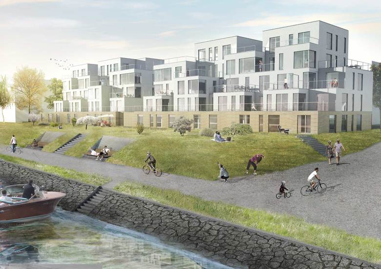 Auf einem 4.000 m² großem Grundstück entsteht eine moderne Wohnanlage mit großzügigen Terrassenappartements. 26 Wohneinheiten und 8 Büro/Gewerbeeinheiten inklusive einer Tiefgarage mit 68 Stellplätzen sind geplant. Die vorgelagerte Promenade bildet eine direkte Anbindung zum Rhein-Herne-Kanal. Für alle Beteiligten verwirklicht sich die Vision einer "Stadt am Wasser".