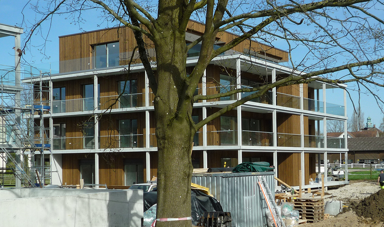 Ganz im Sinne einer inneren Verdichtung entstanden inmitten des Siedlungsgebietes auf einer ehemaligen EFH-Liegenschaft zwei Mehrfamilienhäuser mit insgesamt 14 Eigentumswohnungen.
