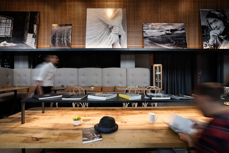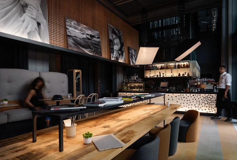 The photography theme is also visible in the bar, designed to look like a huge light box where the visitor can spot a collection of diapositive slides found by the studio members in Istanbul flea markets. Old camera showcases and photography books complete the setting and give a great atmosphere to this new and trendy space.
