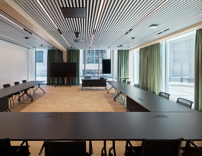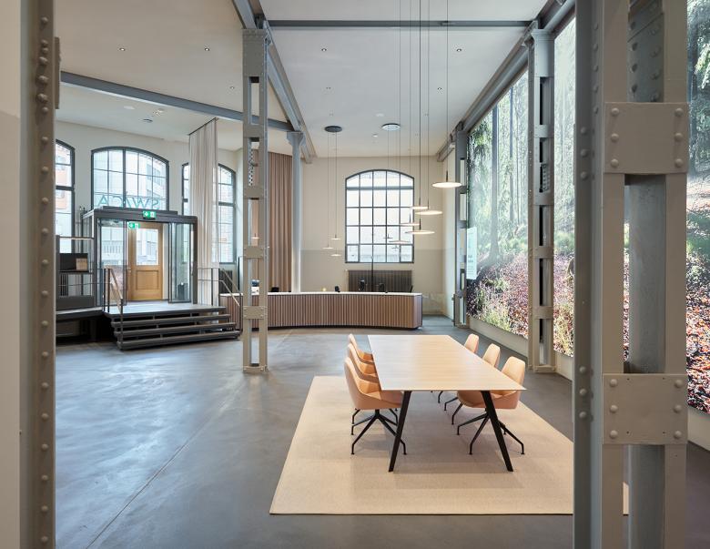 Auf einer Fläche von rund 11’000 m2 entstanden rund 500 attraktive und moderne Arbeitsplätze. Es stehen den SWICA Mitarbeitenden neben den ergonomischen Arbeitsplätzen auch Fokusräume, unter-schiedlichste Sitzungszimmer, Cafeterias und gemütliche Terrassen zur Verfügung. In den zwei überhohen Hallen entstanden Zonen für Projekt- und Kreativarbeit, welche durch raumhohe Vorhänge unter-teilbar sind. Im Erdgeschoss befindet sich das neue Schulungs- und Konferenzzentrum der SWICA. Die Kundinnen und Kunden werden im neu inszenierten historischen Portikus empfangen und beraten.