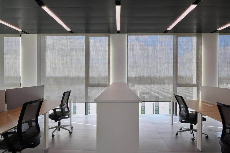 Innenliegender Sonnenschutz mit Soltis Touch für das neue Bonfiglioli Headquarter