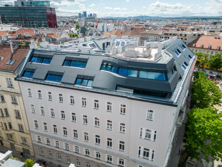 Im Zuge des Bauvorhabens werden die Fassaden saniert und die Fenster ausgetauscht. Die Schrägdächer im Innenhof werden mit Dachflächenfenstern versehen. Zudem werden alle Fensteröffnungen mit einem automatischen Sonnenschutz ausgestattet.