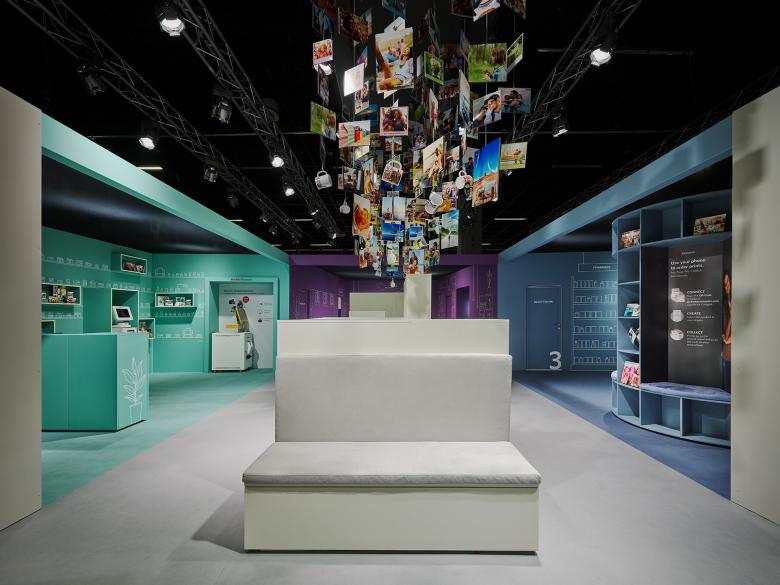 Messestand für Kodak Moments auf der Photokina 2018 in Köln - Menschen zücken ihr Smartphone zu allen Gelegenheiten, überall und jederzeit, um Erinnerungen im Bild festzuhalten, allerdings meist für das digitale Leben in der Cloud.
