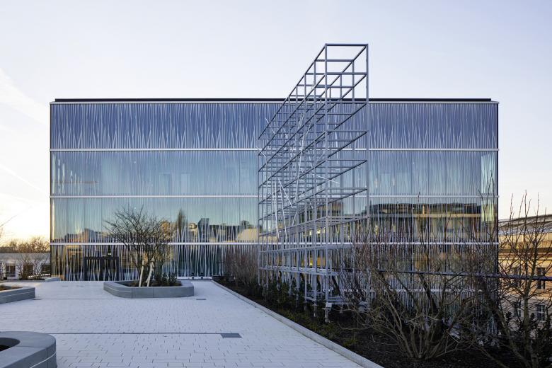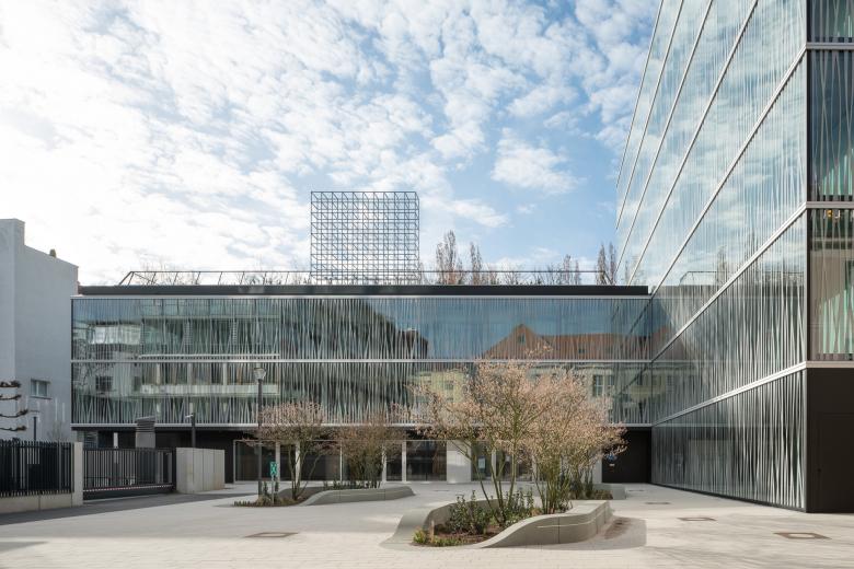 Die Grundrissstruktur des Institutsgebäudes trägt der interdisziplinären Arbeitsweise und der gewünschten Kommunikation zwischen den wissenschaftlichen Arbeitsgruppen Rechnung. Ein alle Geschosse verbindender Luftraum mit skulpturaler Wendeltreppe stellt das prägnante Zentrum des Gebäudes dar, das der Erschließung und der Orientierung dient und als interner Treffpunkt zur Kommunikation einlädt. Hier liegen die Besprechungs- und Aufenthaltsräume sowie die Teeküchen. Da die Wissenschaftler programm- und disziplinübergreifend forschen und sowohl experimentelle als auch mathematische An- sätze verfolgen, kommen im Institut klassische experimentelle molekularbiologische Laborarbeitsplätze mit rechnerintensiven bioinformatischen und theoretischen Arbeitsplätze zusammen, wobei die Anteile der jeweiligen Arbeitsplätze je Arbeitsgruppe variieren und flexibel anpassbar sind.