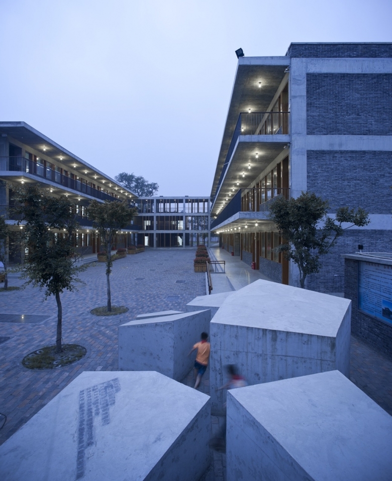 The design responds to Sichuan's hot and humid climate. Sunshade device, natural ventilation and heat reduction are important elements considered in design. Unlike many rebuilding projects in Sichuan, whose materials and workers was completely imported from other province as a state-organized action, we explore to maximize the use of local resources which can be acquired, including material and technique, so that local workers can get involved. Local materials such as wood, brick and bamboo are used for windows, walls, and ceilings. The recycled bricks from earthquake are used in pavement. Cast-in-situ concrete are used for exposed structure. The construction is completely done by a local contractor. The construction cost is well controlled within the economical budget of RMB 1,500 yuan per square meter.