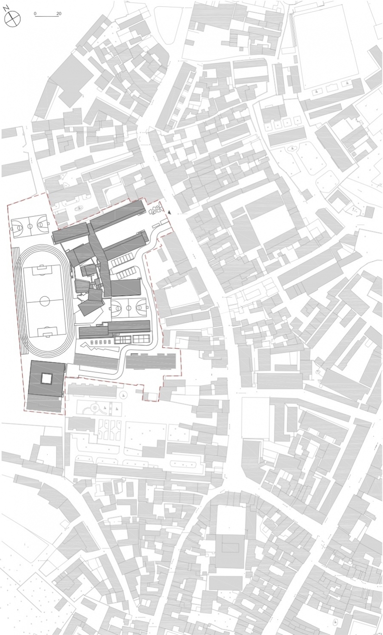 The main idea is to conceive a school as a small city, giving diversified space so as to enrich children's experience and activity. The design is conceived as a cluster of small buildings to create a micro-city like campus. The fragmentary instead of unified building composition defines many typological places such us streets, plazas, courtyards, and steps, analogous to original Xiaoquan's urban space in scale and pattern, so as to provoke a familiar feeling from daily life. These places are intended to encourage diversified and spontaneous activities of children. Various-scale playful corners and labyrinth spaces as passages and playgrounds are created to provoke children’s curiosity and imagination. Through this, we also intend to continue the urban space memory of Xiaoquan town, so as to avoid a rebuilding in brutal, overwritten style without respecting past, which is typical in earthquake area.