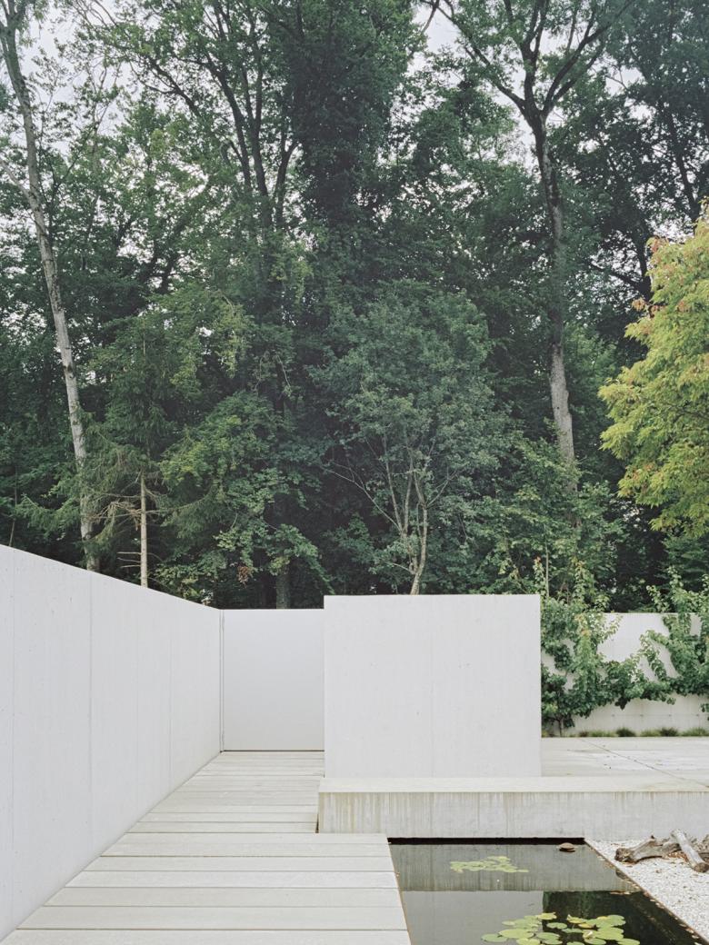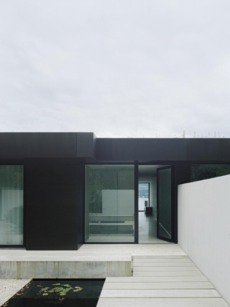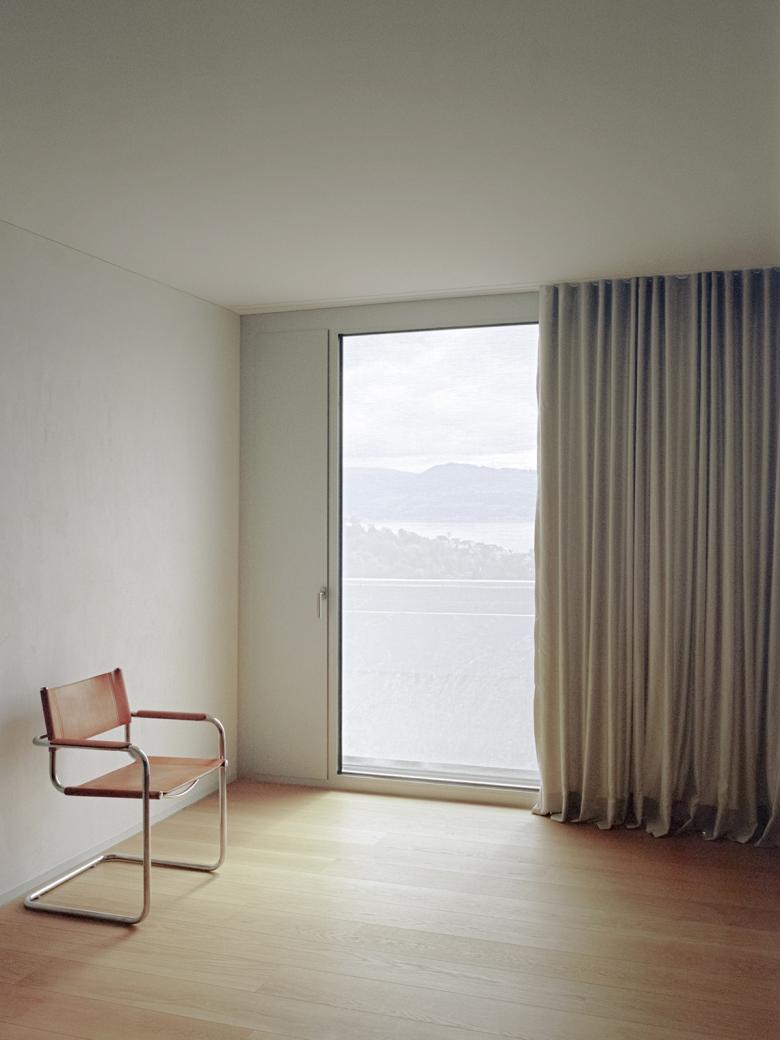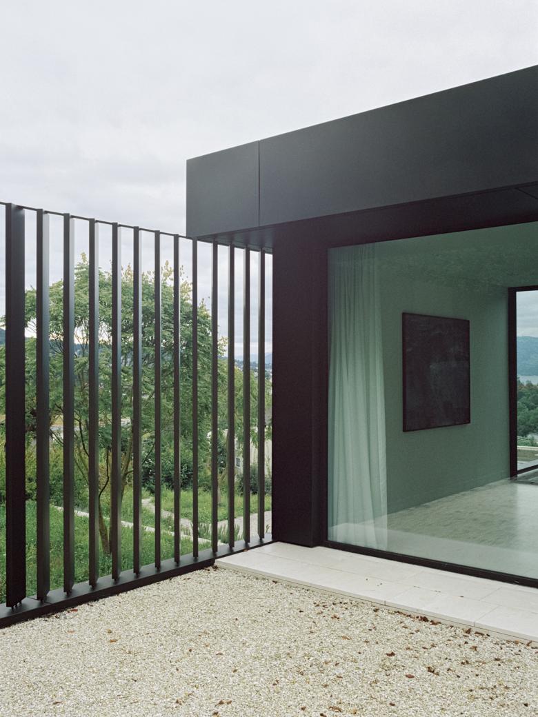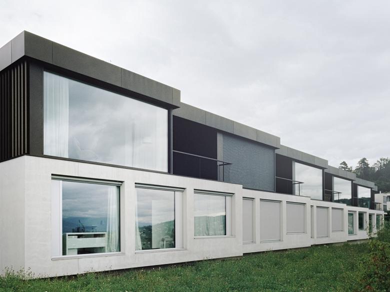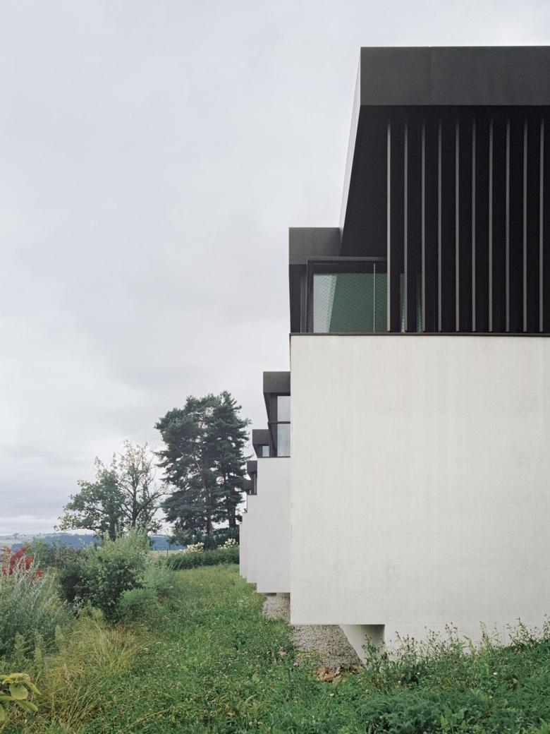 Fünf leicht zueinander versetzte Patiohäuser bespielen die Parzelle am Siedlungs- und Waldrand von Meilen. Das auf den eindrücklichen Kontext zugeschnittene Projekt reagiert mit einer spezifischen Bebauungstypologie auf die beidseitigen Aussichtsqualitäten See und Wald. Ein starker Naturbezug, qualitätsvolle Aussen- und Innenräume sowie der fliessende Übergang von Innen nach Aussen waren die entwurfsbestimmenden Kriterien. Die niedrige Bauweise mit pavillionartiger Wirkung berücksichtigt zudem die sensible Umgebung.