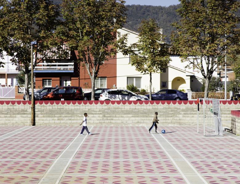 Los motivos geométricos evocan el campo de lo domestico y también aquellos actos que identifican el barrio, como el desfile de vestidos de papel, el baile de gigantones o los conciertos en la carpa. La actuación refuerza la singularidad de cada ámbito, pero por encima de todo, propicia un talón de fondo capaz de acoger confortablemente a un abanico más amplio de actividades y de usuarios, incluyendo el juego.
