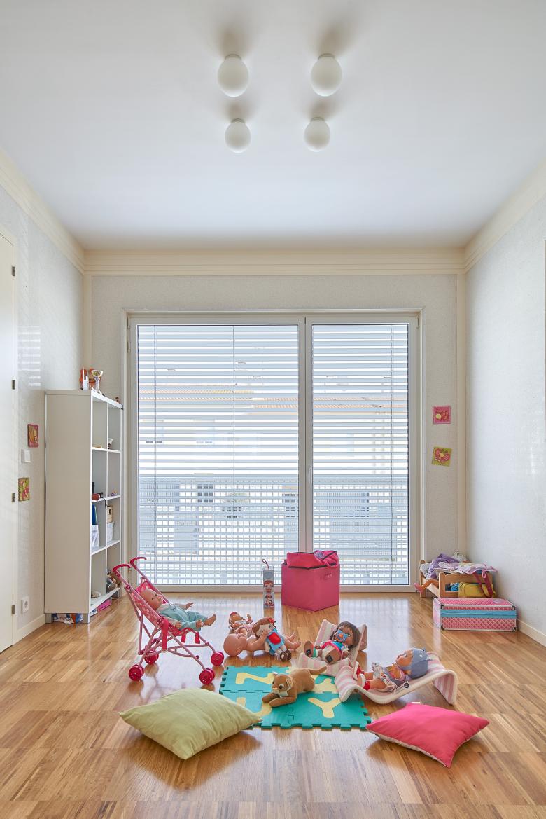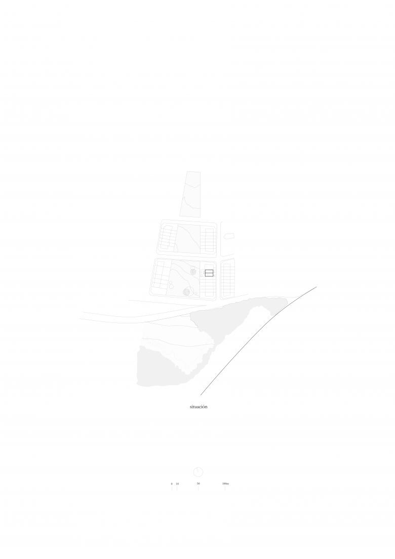 La planta puede leerse como un conjunto de cuatro filas de habitaciones iguales dislocadas. El gran espacio vacío central, entre dos vanos, es la excepción; subvierte la lógica de las piezas entre jácenas, enfatizando la presencia de los diafragmas estructurales. Esta sala interior está conectada a cuatro piezas menores que la rodean. Le aportan luz natural de distintas orientaciones, acomodan actividades complementarias y articulan las estancias restantes.