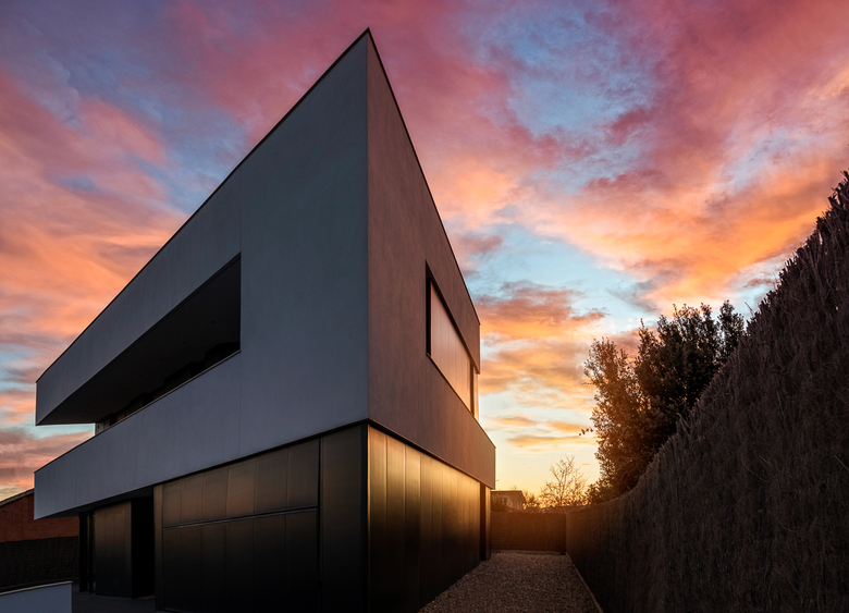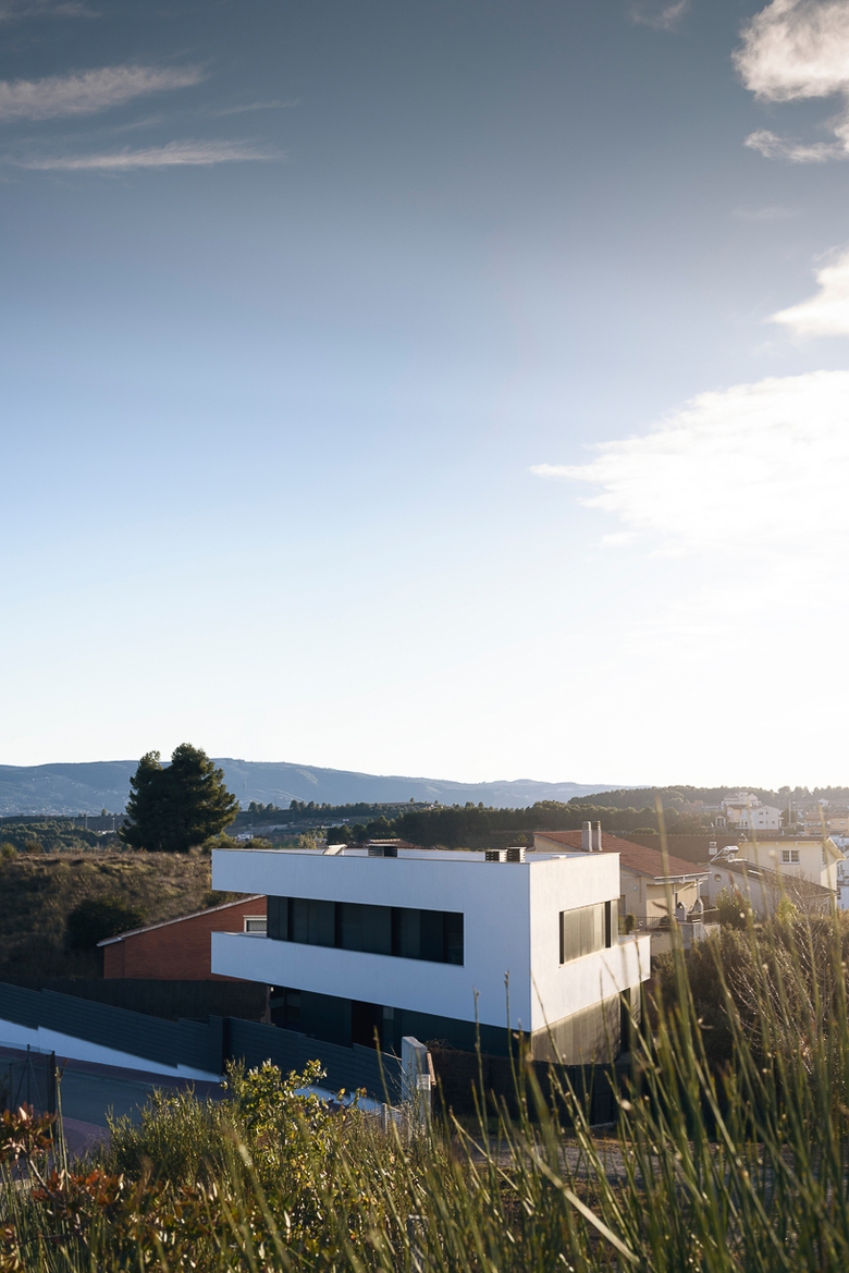 Housingin view the geometry of the plot and programmatic needs arising from the property, resolves to a triangle that almost clogs the buildable area and replicates the shape of the edge of the plot, appropriating by extension and projection of the total plot. On this, a broken floor contains the evening program.