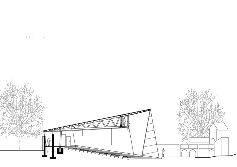 Neubau einer Zuschauerhalle mit Kassenhaus.