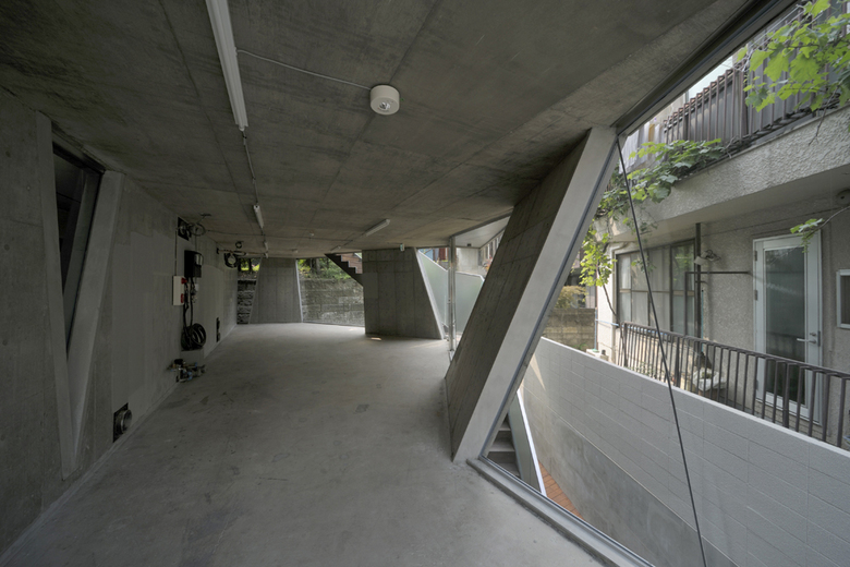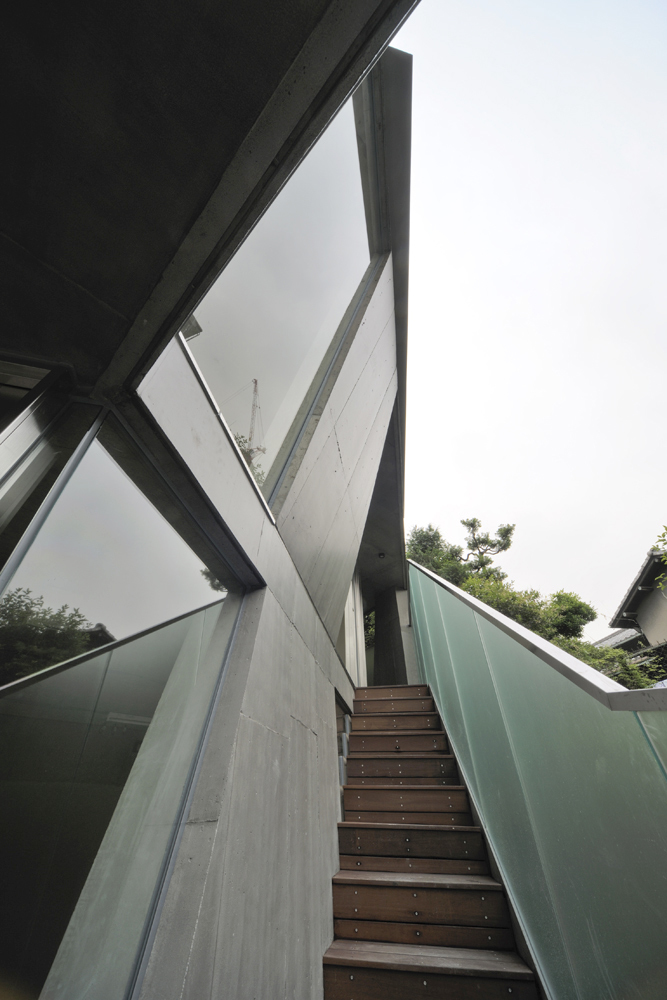 代官山町には坂道や階段状の路地が多い。散策が楽しい、新しい発見に遭遇する空間。その階段状路地を設計に取り込んだ。敷地内に設けた路地状の空地は、そのまま上階へつながっていく。階段を上がると、まちの見え方も少し変わる。空地が、隣接する屋敷の古い庭とつながっていることに気づく。