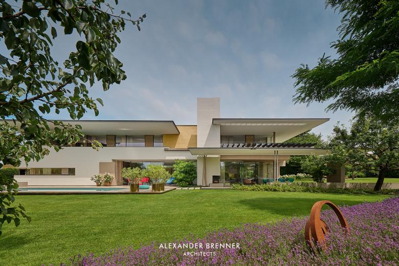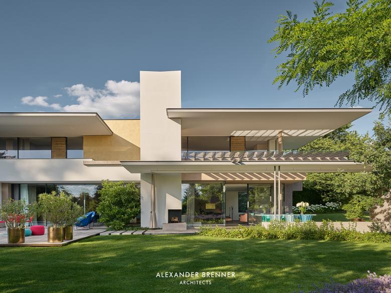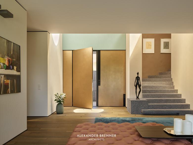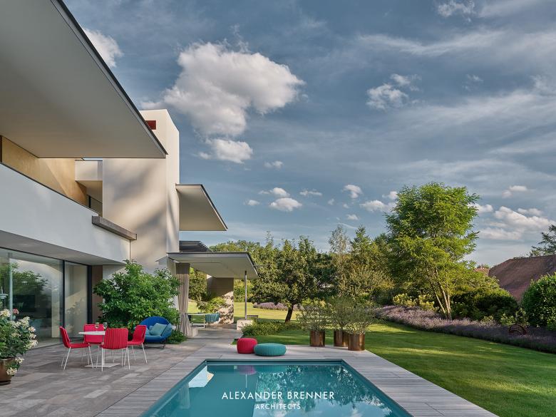 We had the privilege of planning the Portus House in Pforzheim in a spacious landscape garden, the existing features of which practically predetermined the location and orientation of the house. Positioned on the northern edge of the site, the house and its terraces open up towards nature on three sides. Distant neighbouring buildings were hidden by modulating the terrain accordingly and by deliberately planting new large trees and shrubs. The house for a person who spends his life inventing beautiful objects, that is, the creation of jewellery, had to bear witness to the lifestyle habits of its owners, but above all, to the culture of its time.
