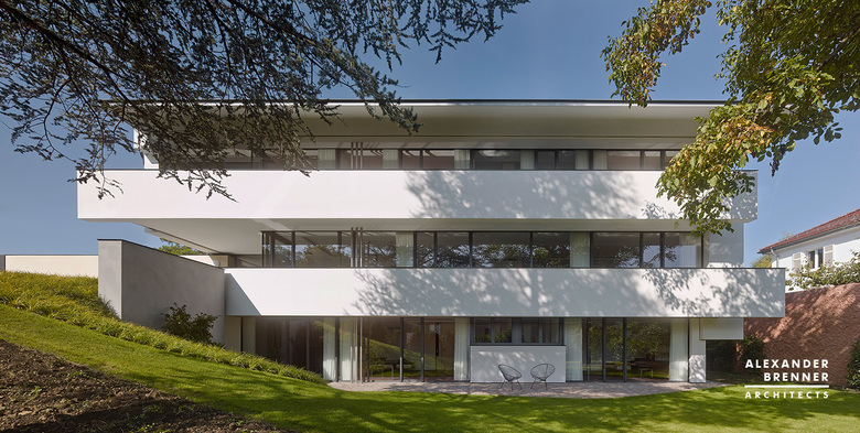 Das Grundstück liegt an einer für die Stuttgarter Hanglagen typischen Wohnstraße mit einer vorwiegend aus den 1930er-Jahren stammenden Bebauung. Zwar nimmt das Haus die Bodenständigkeit und die Maßstäblichkeit der benachbarten kubischen »Stuttgarter Kaffemühlen« auf, aber zur Straßenseite ist es, modernen Wohnbedürfnissen geschuldet, weitgehend geschlossen.