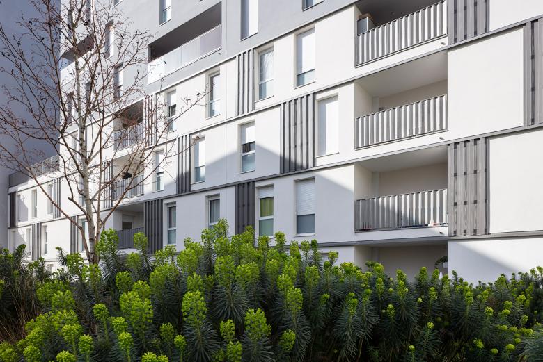South to north - The reorganization of the building project reflects the desire to bring light to the interior of the block and along the François Mitterrand avenue. Creating a sunny community space requires working on the density and compactness of built-up areas. Volumes scale upwards from the human scale of ground floor + 3 or ground floor + 4 (in buildings along the south) up to a more dense urban scale of up to ground floor + 16 (in the buildings along the north). We thus release land which is not built up and ensure appropriate natural light.