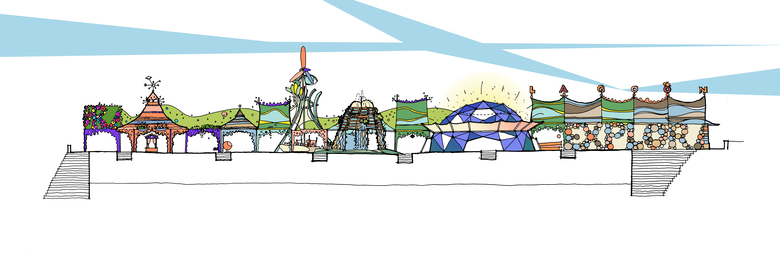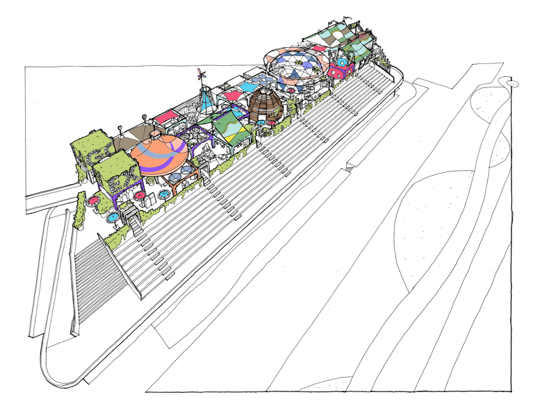 The design crossed entertainment, education and socio-economic boundaries through the creation of a memorable, meaningful place. This project created a destination akin to a club that everyone could afford and belong to, one supporting citizenship and educational curricula. Under a soaring cone-like structure inspired by local architecture, children would make art, build, and engineer; under a cirque-like tent, children would perform or engage in magic, song, and dress-up. At the geodesic climbing dome defining the football pitch, children would find physical adventure and exercises in teamwork; under the eco-tent made of recycled railroad ties, children would sail boats at a mini lagoon, explore wind turbines and solar energy, power up game toys and telephones, recycle and reuse. In an Olympic twist of fate, the city’s winning bid reinstated the need for the stadium’s original use displacing the complex. The project’s successful design and programming helped shift it from being a supportive element into being an anchor of development envisioned as a totally new project with the same pedagogically-based and culturally relevant emphasis as a destination of play and learning.