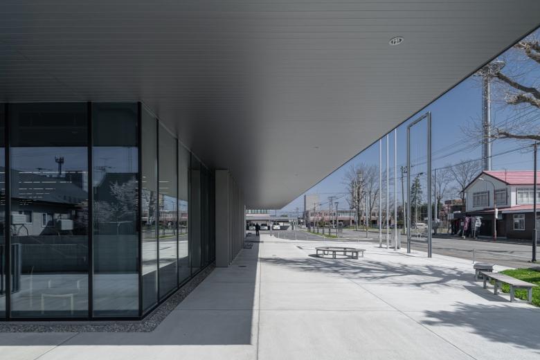 十勝地方に位置する芽室町の役場庁舎である。まちの中心と公共施設群の結節点となる敷地を生かし、歩いて回れるまちづくりの核となる開かれた庁舎を目指した。