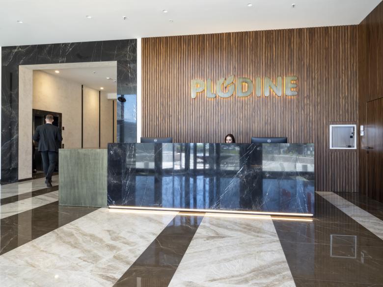 Das ursprünglich postmoderne Design des Bestandsturms machte die Planung zu einer komplexen und sehr anspruchsvollen Herausforderung, die im integralen Planungsprozess erfolgreich gemeistert wurde. Um dem Turm den gewünschten repräsentativen Auftritt zu verleihen, folgten wir dem ressourcenschonenden Ansatz „so viel wie nötig, so wenig wie möglich“. Das hatte zur Folge, dass das Projekt inhaltlich und funktional für Plodine maßgeschneidert ist, aber die bestehende Konstruktion mit wenigen, jedoch komplexen statischen Änderungen beibehalten werden konnte.
