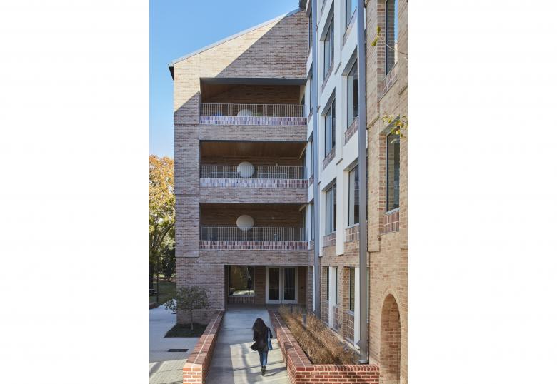 Mit der vorgefertigten Pfosten-/ Riegelkonstruktion aus der lokalen Holzart Southern Yellow Pine leistet die Rice Universität Pionierarbeit in Sachen nachhaltiges Bauen. Das Gebäude soll als Musterbeispiel für alle zukünftigen Collegebauten auf dem Rice Campus dienen und erhielt einen Zuschuss des US-Landwirtschaftsministeriums zur Förderung der Nachhaltigkeit beim Bau von Gebäuden unter Verwendung von Massivholz. Das Äußere des Gebäudes ist mit Ziegeln aus der „St. Joe Brick Works“ Backstein-Manufaktur verkleidet, dem historischen Fassadenmaterial der Rice Universität. Für eine besondere Plastizität innerhalb der Fassade sorgen Flächen aus strukturiertem Putz.