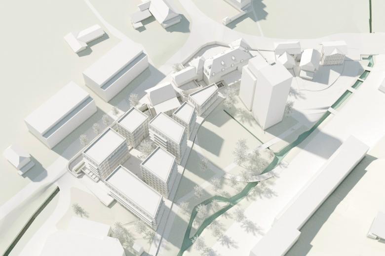 Als Grundlage für die Arealentwicklung soll das Testplanungsverfahren das Potenzial möglicher baulicher Entwicklungen sowie Nutzungsszenarien für das frühklassizistische Mühlehauptgebäude von Carl von Sinner aufgezeigen.