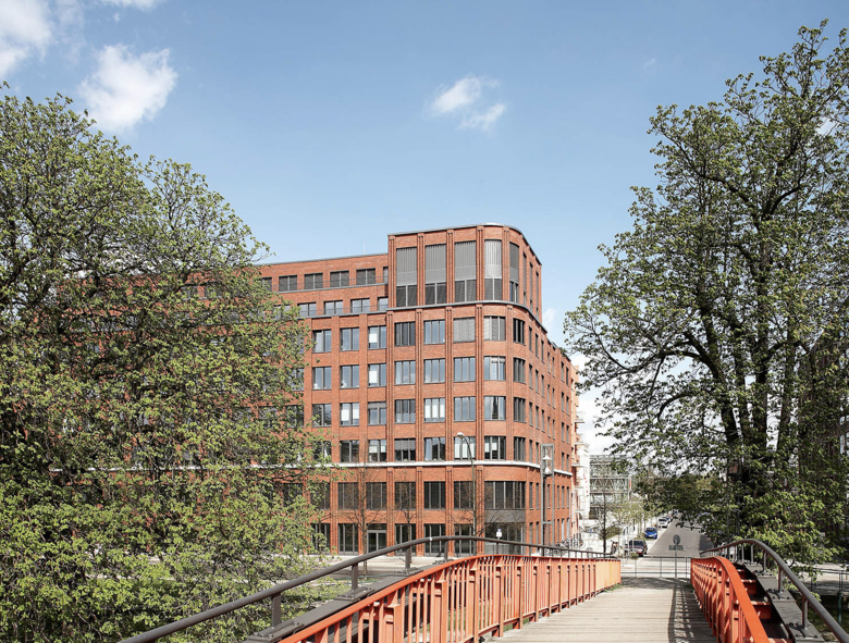 Die architektonische und städtebauliche Wirkung des Hauses wird geprägt durch das Zusammenspiel von plastischer Differenzierung des Volumens und der ebenso haptischen wie visuellen Kraft des Backsteins. Während das Haus an der Ecke seine maximale Höhe erreicht, und sich so als ebenso stolzer wie prägnanter Baukörper am Ufer präsentiert, folgt die Längsfront ganz beiläufig der gebogenen Strasse und gewinnt hier zusammen mit der kontrapunktischen Wirkung der dreieckigen Lisenen seine sehr spezifische architektonische wie stadträumliche Dramaturgie.