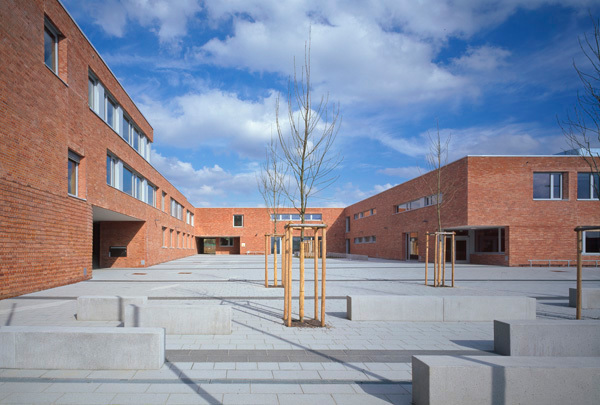 Der konzeptionelle Ausgangspunkt ist der Typus Schule als sozialen wie urbanen Raum. Das aus dem Städtebau entwickelte Ergebnis war demzufolge eine wenig kompakte, dafür jedoch differenzierte öffentliche Räume schaffende Gesamtfigur. Das Zentrum des Ensembles liegt mit dem zum neuen Stadtteil hin offenen Platz im Freien. An ihm liegen sämtliche Eingänge der Grundschule, der Kindertagesstätte und des Jugendhauses. Entsprechend der funktionalen Anforderungen an den ganztägigen Betrieb mit gemeinsam genutzten Einrichtungen sind die einzelnen Teilbereiche im Inneren des Gesamtkomplexes miteinander verbunden.